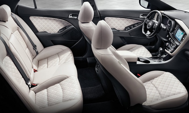 Even with that foot of space, the Kia Optima has considerably more front legroom than the Ford Taurus. Both vehicles accommodate five people, and the Optima's quality leather seats add luxury and comfort to your ride. The Taurus and the Optima both have front seat heating options, but the Optima also offers optional rear seat heating. The steering wheel of the Optima is even heated. These are great options for frigid Patterson, NJ winters.