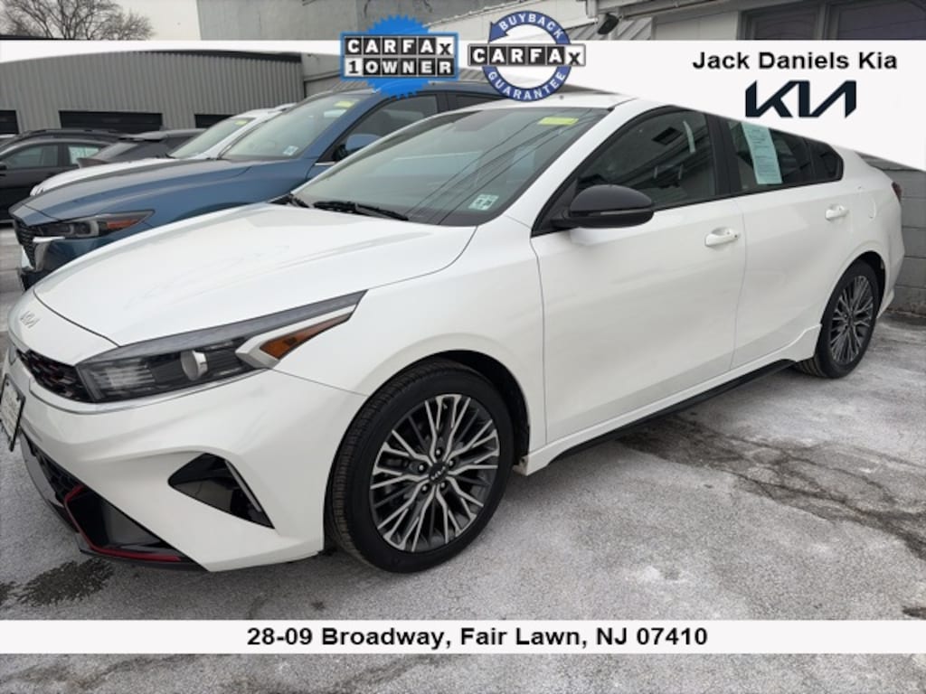 Certified. Snow White Pearl 2023 Kia Forte GT-Line FWD CVT CARFAX One-Owner. 2.0L I4 MPI