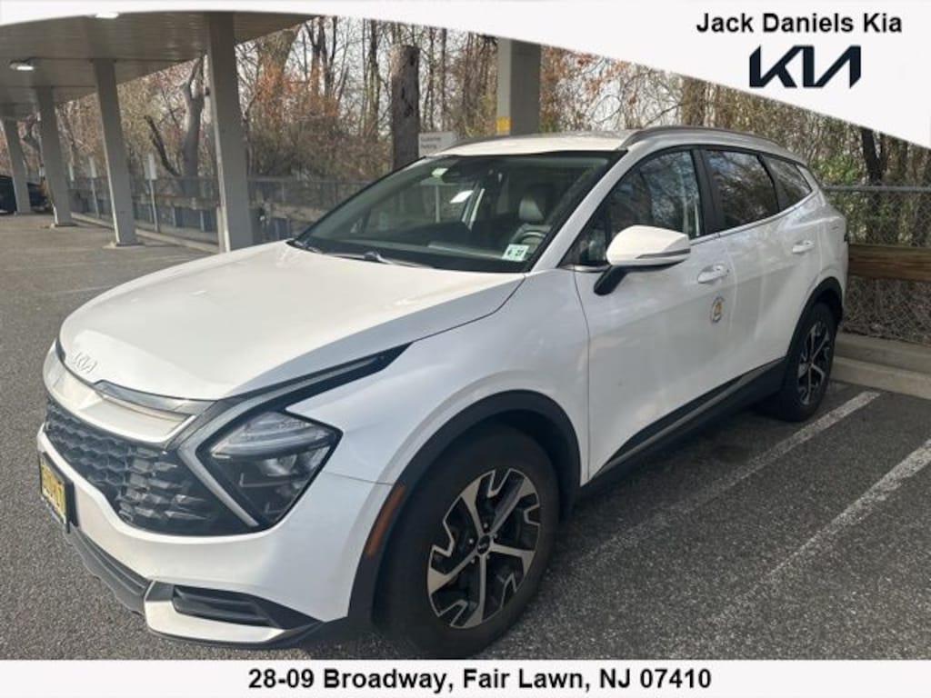 Certified. Glacial White Pearl 2023 Kia Sportage EX AWD 8-Speed Automatic CARFAX One-Owner. I4